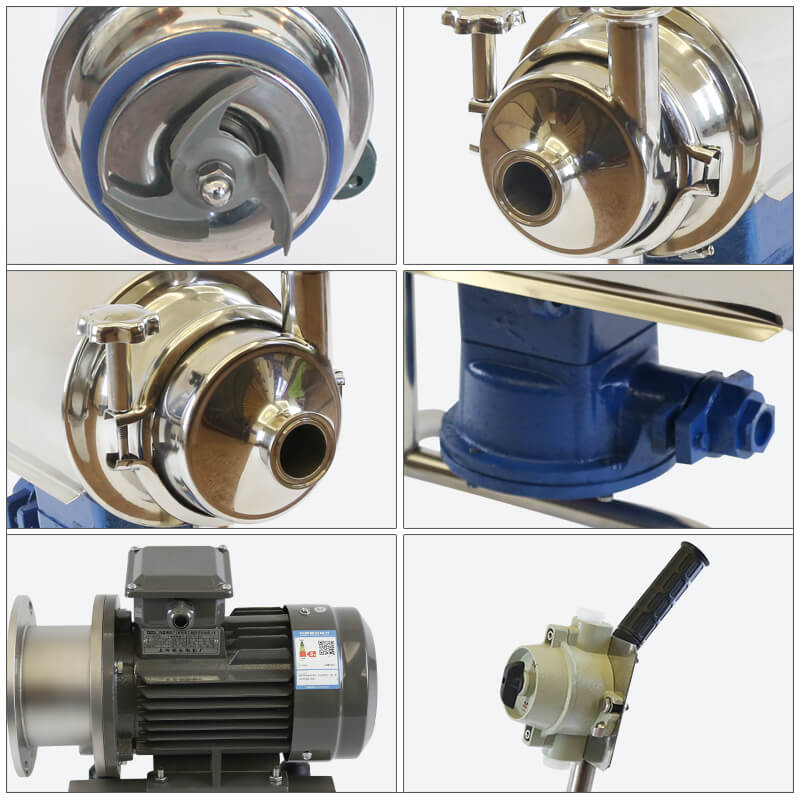 不锈钢卫生泵(又名奶泵、饮料泵)属单级、单吸式卫生泵,适合输送牛奶、饮料、酒等各种液体。它是食品、化工、医药等行业不可缺少的输送设备,特别适合于应用在管式杀菌、酸奶持温设备、CIP清洗等阻力较大的系统中。叶轮安置在泵壳里面,它和泵轴一起旋转,叶轮刀片以动能和压能的形式将能量传达给流体。该泵不可反向旋转,正确的旋转方向是顺时针,从电机后面可看出泵的旋转方向。